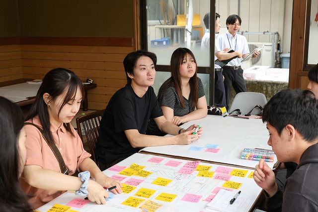 玉川大学の学生の皆さんが地域の方々と一緒に施設を見て回り、実際に話を聞きながら、「この場所をもっと良くするには?」をテーマに改修アイディアを考えてくれました。館内を丁寧に観察したり、意見を出し合ったり、図面にまとめたりと、真剣に取り組む姿がとても印象的でした。学生ならではの自由な発想と、地域の皆さまのリアルな声が合わさり、これまで気づかなかった新しい可能性を提案していただきました。